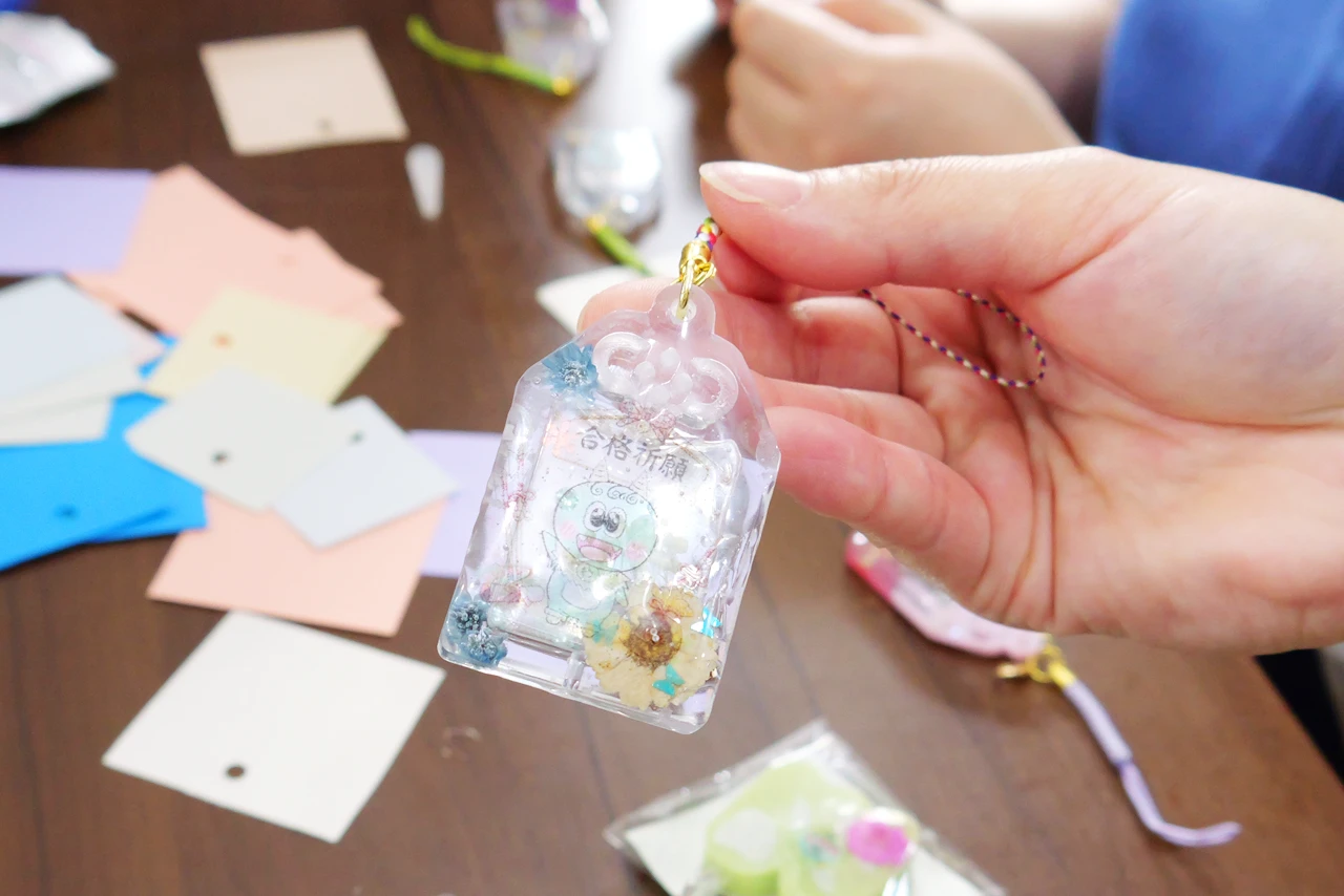 入社当初は、厨房での調理業務を中心に、外部販売に向けた買い出しや下準備、販売業務を担当していました。現在は、おはじきシールやUVレジンキーホルダーなどの雑貨製作にも携わっています。厨房での調理は引き続き担当しており、日々さまざまな業務に関わりながら仕事をしています。